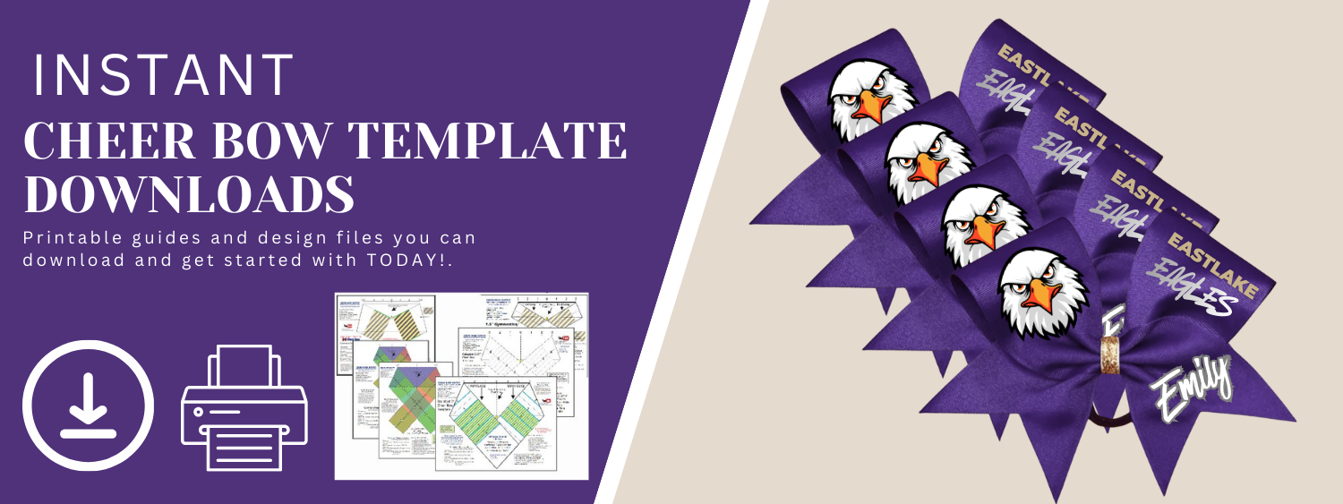 These printable folding template shows how to fold bow perfectly proportional and even has ribbon measurement guide for loop graphic placement printed on the template to make sure graphics are visible.