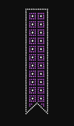 Our key chain rhinestone bow strips are perfectly sized for making cheer bow key chains. This design is made with holographic rhinestones for ultra sparkle and shine! The strip is sized to fit 1.5" wide ribbon and is approximately 6" long. Comes on an iron on transfer sheet and can be ironed onto ribbon or smooth spandex (like regular Mystique) with household iron. Includes piece.  Main color is outline.  Accent is squares.