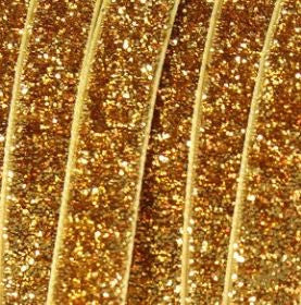 100% Nylon. Our Metallic Velvet Ribbon is sparkly and amazing! The sparkles do not come off. Easy and clean to work with :)