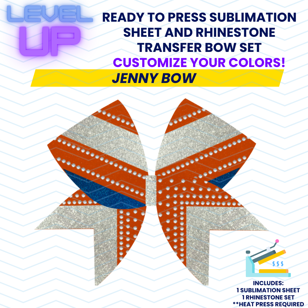 3" Cheer Bow - Jenny Bow Sublimation & Rhinestone Ready To Press Transfer Set