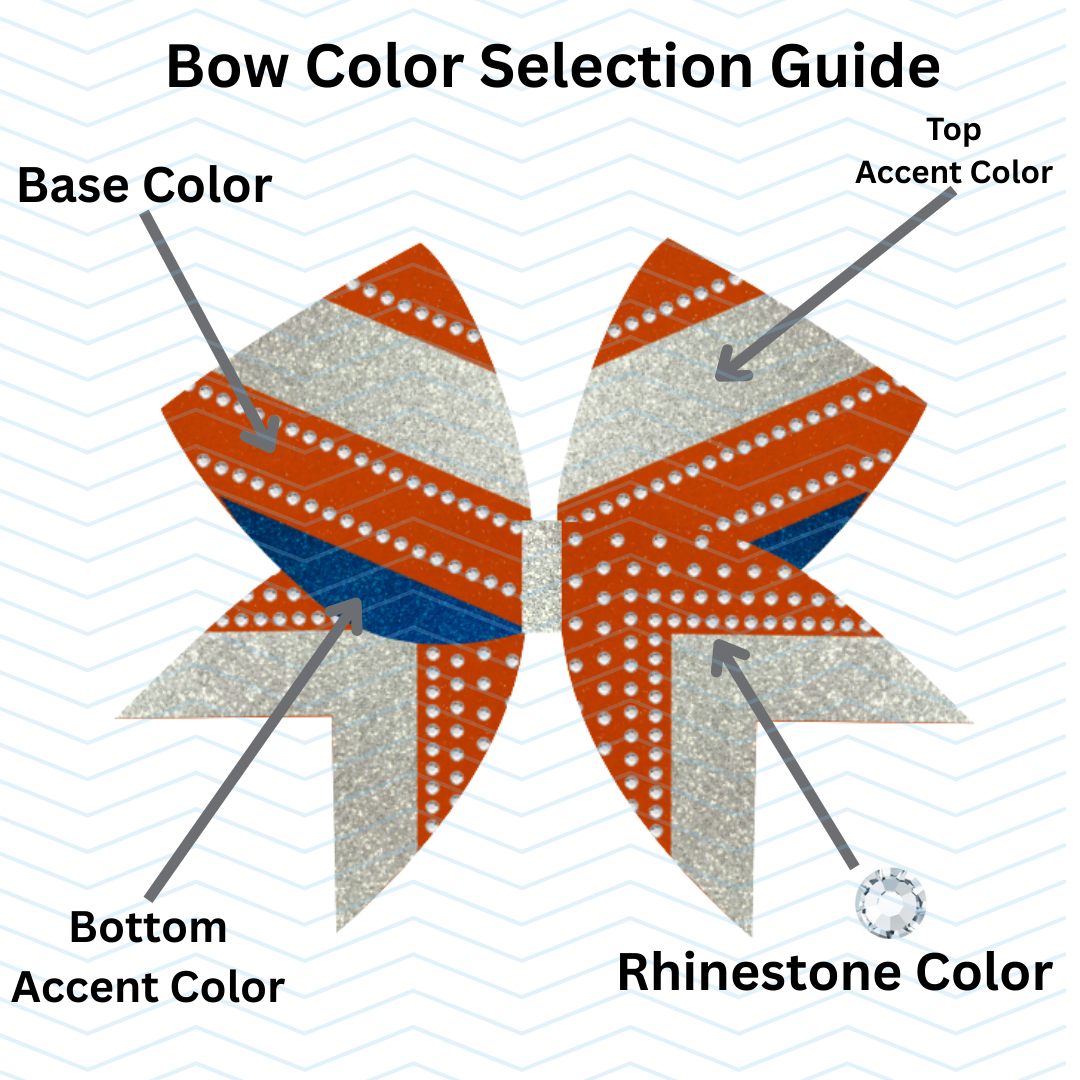 This bow is designed to be used with 28" of 3" wide ribbon and Cheer Bow Supply's folding template mat. Your finished bow result may be different depending on the length of ribbon used and folding technique. Bow previews show two looks with one design depending on placement.