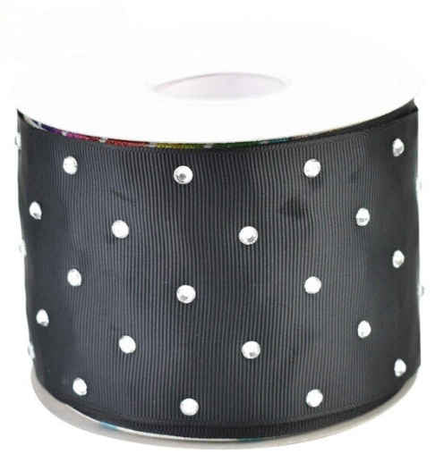 3" SS16 Rhinestone Black Grosgrain Ribbon - 1-yard