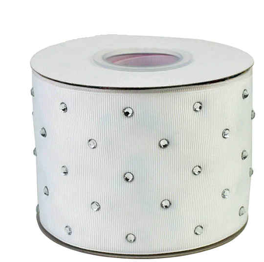 3" SS16 Rhinestone White Grosgrain Ribbon - 1-yard