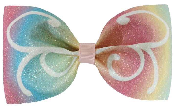 These glitter strips are printed and ready to be pressed on your ribbon. They are all in one piece, so no piecing of individual colors is required! Just peel the backing, press on your ribbon and you are ready to fold your bow!