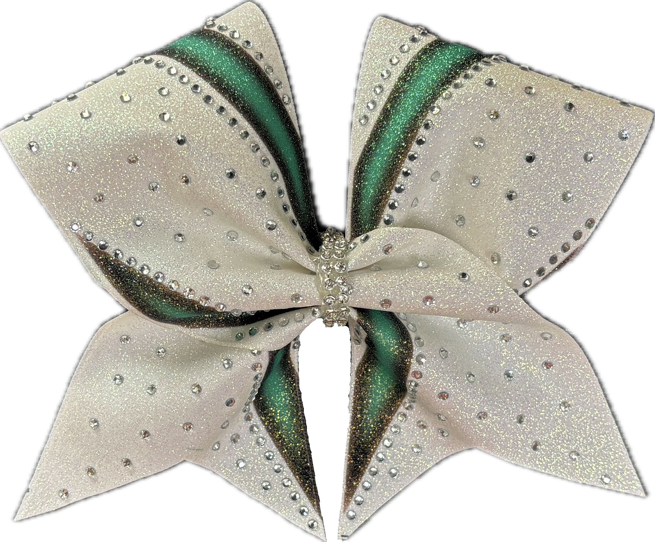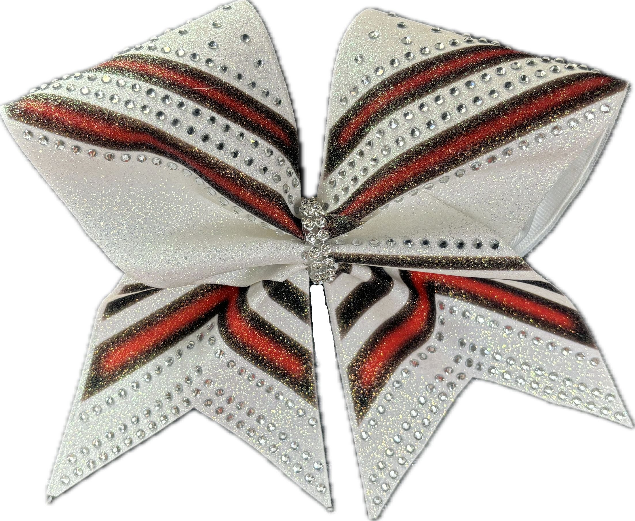 This bow is designed to be used with 28" of 3" wide ribbon and Cheer Bow Supply's folding template mat. Your finished bow result may be different depending on the length of ribbon used and folding technique. Bow previews show two looks with one design depending on placement.