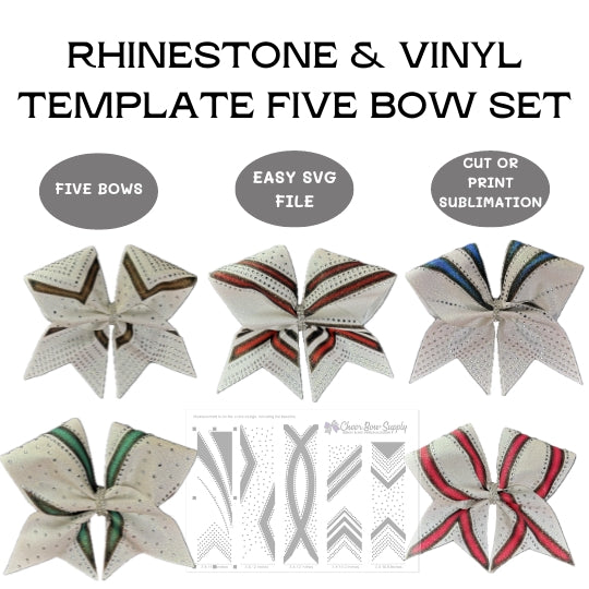 Rhinestone and Vinyl or Sublimation Mixed Media 3" Cheer Bow File Download - Five Bow Set