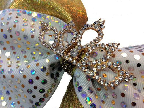 Rhinestone Crown Center for Cheer Bows - Silver or Gold