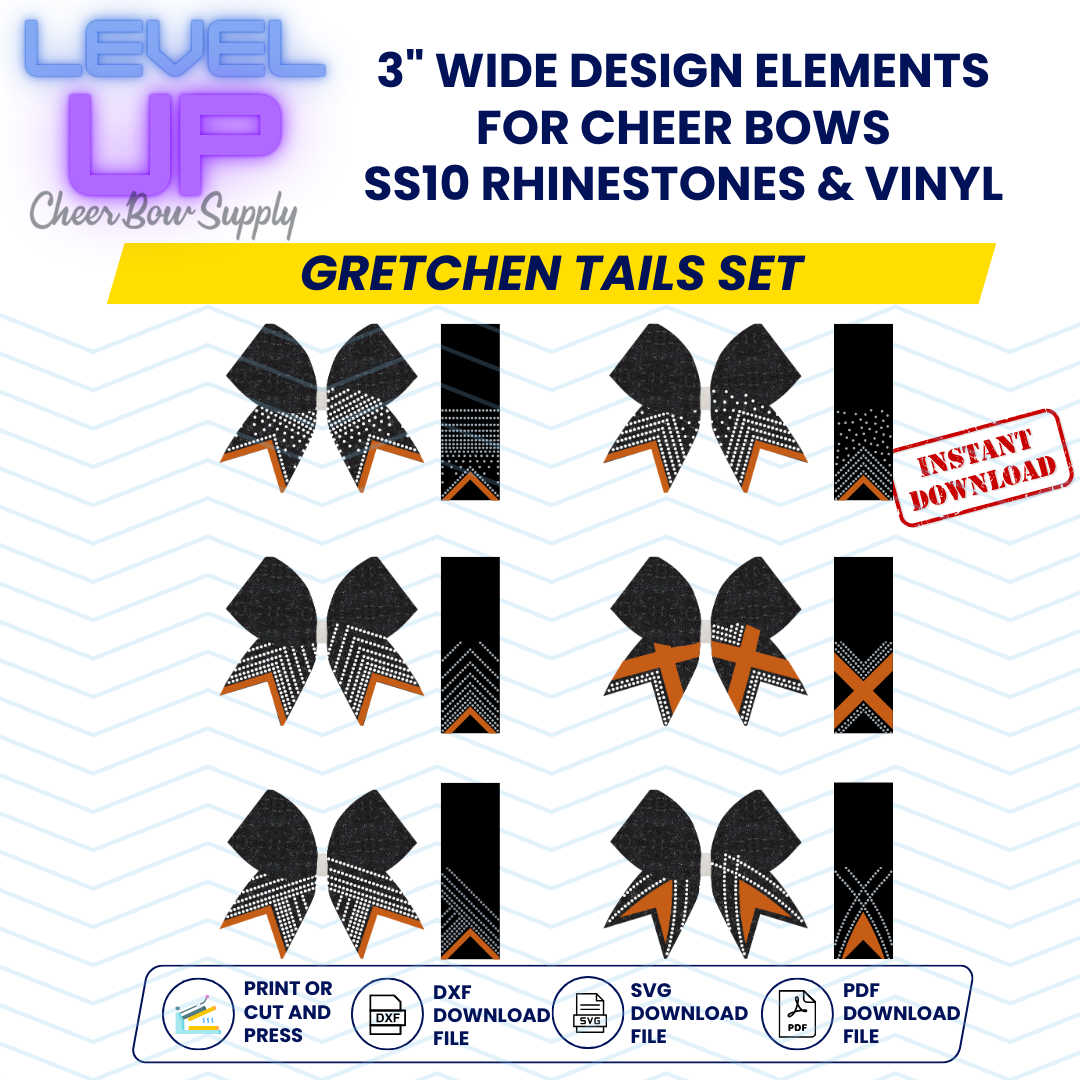 Level Up Rhinestone and Vinyl Files Gretchen Tails Set - 3" Cheer Bow Template Download