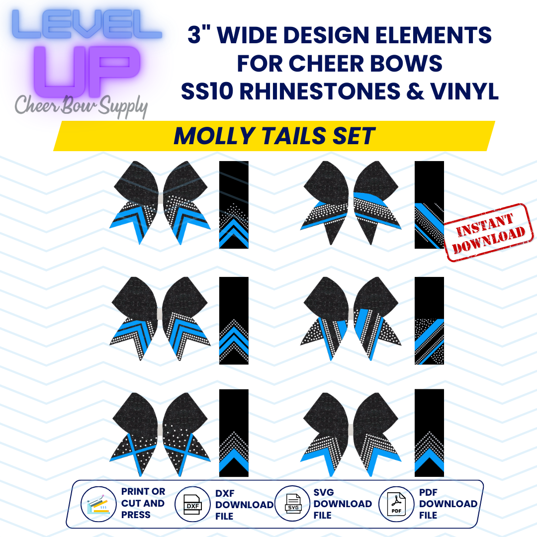 Level Up Rhinestone and Vinyl Files Molly Tails Set - 3" Cheer Bow Template Download