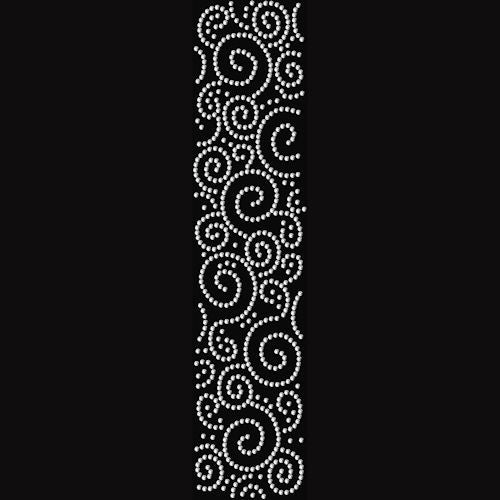 The strip is sized for 3" wide ribbon and is approximately 12.5" long. Comes on an iron on transfer sheet and can be ironed onto ribbon or smooth spandex (like regular Mystique) with household iron.