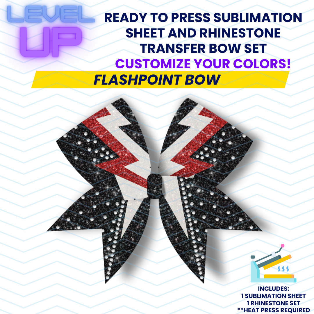 3" Standard Cheer Bow - Flashpoint Bow Sublimation & Rhinestone Ready To Press Transfer Set