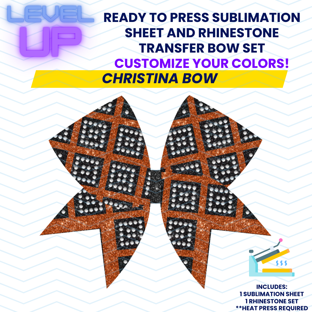 3" Standard Cheer Bow - Christina Bow Sublimation & Rhinestone Ready To Press Transfer Set