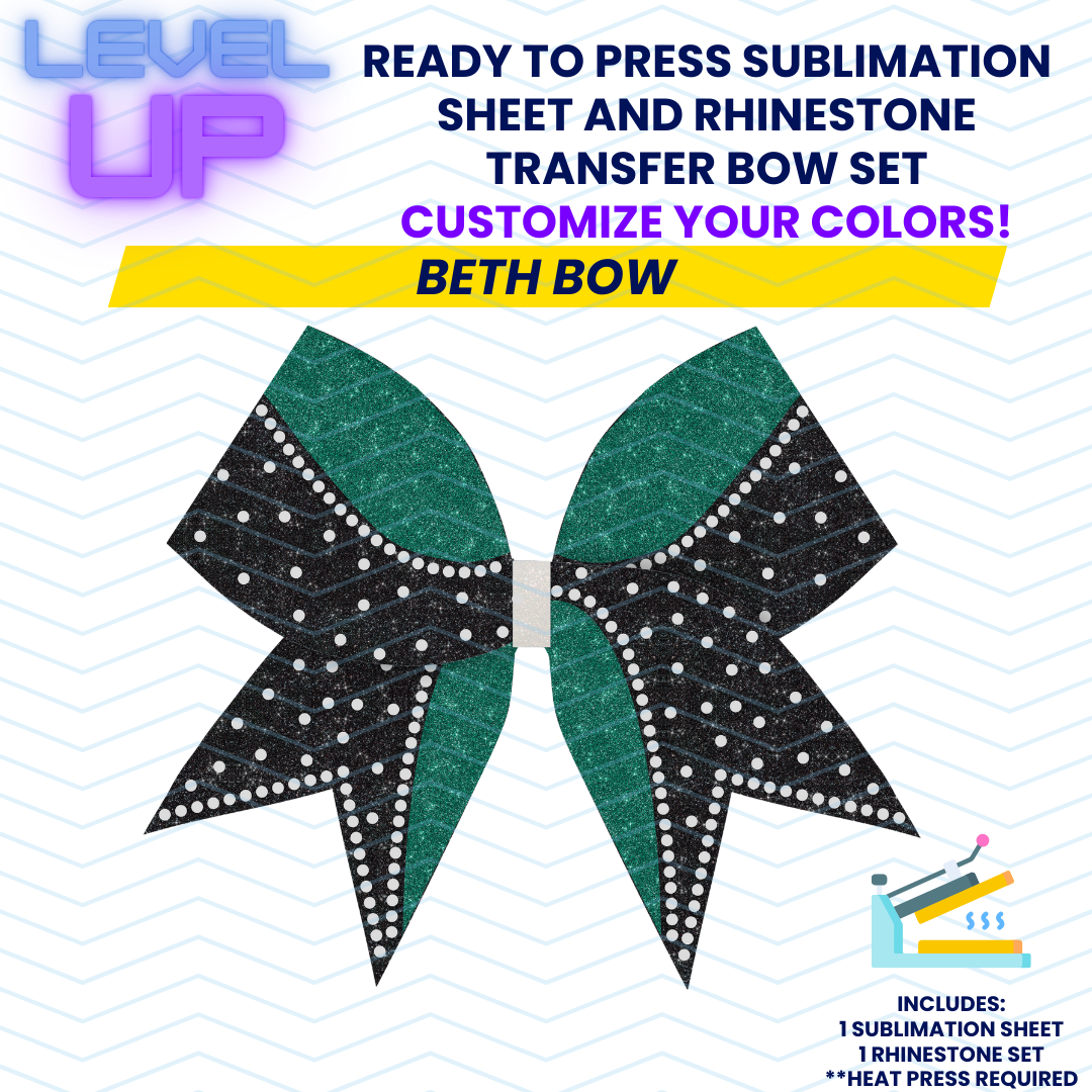 3" Standard Cheer Bow - Beth Bow Sublimation & Rhinestone Ready To Press Transfer Set