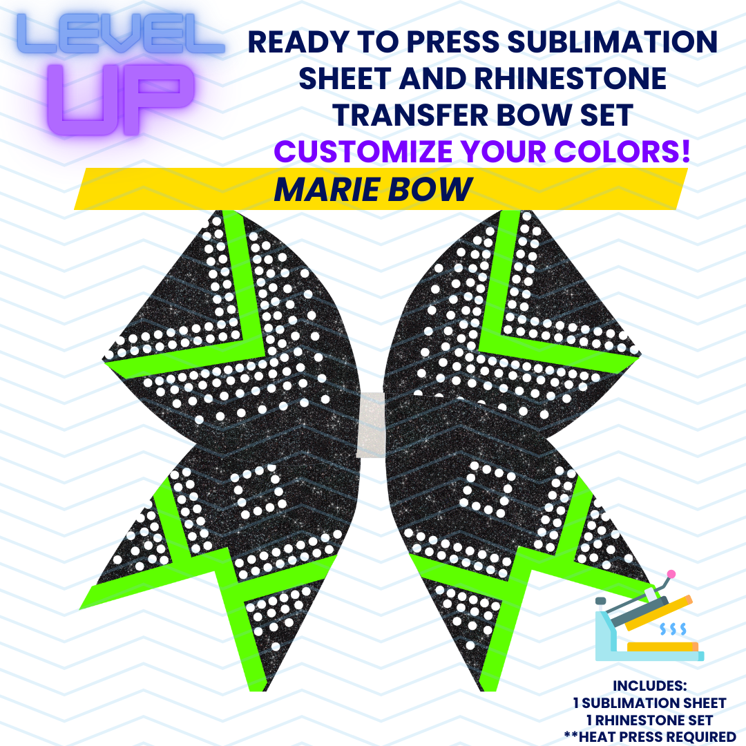 3" Standard Cheer Bow - Marie Bow Sublimation & Rhinestone Ready To Press Transfer Set