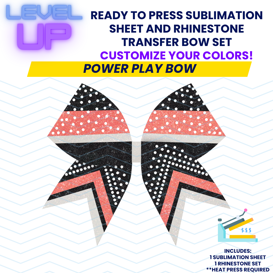 3" Standard Cheer Bow - Power Play Bow Sublimation & Rhinestone Ready To Press Transfer Set