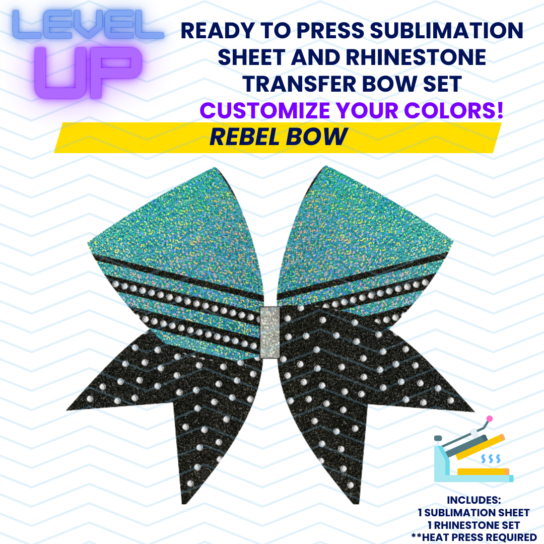 3" Standard Cheer Bow - Rebel Bow Sublimation & Rhinestone Ready To Press Transfer Set