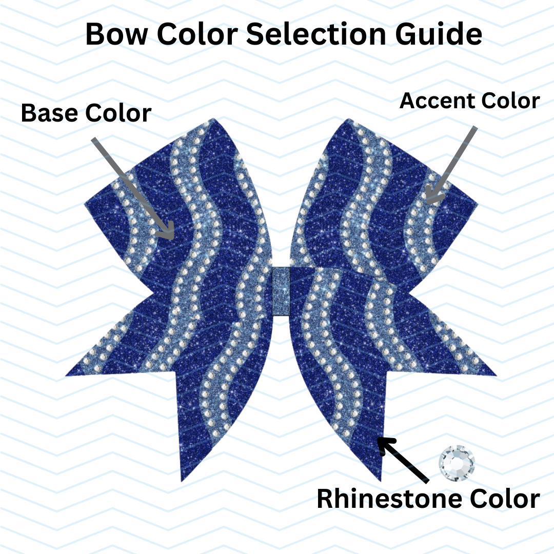 This bow is designed to be used with 28" of 3" wide ribbon and Cheer Bow Supply's folding template mat. Your finished bow result may be different depending on the length of ribbon used and folding technique. Bow previews show two looks with one design depending on placement.