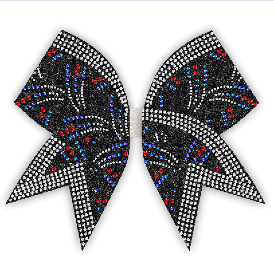 Our rhinestone cheer bow strips trim are made with high quality stones. They are machine cut for brilliant shine! The rhinestones are hotfix and should be applied with heat press, but can also be applied with household iron. This strips measures: 2.8" Wide and 13" Long. Includes two mirror image strips with a v-cut built into the design.