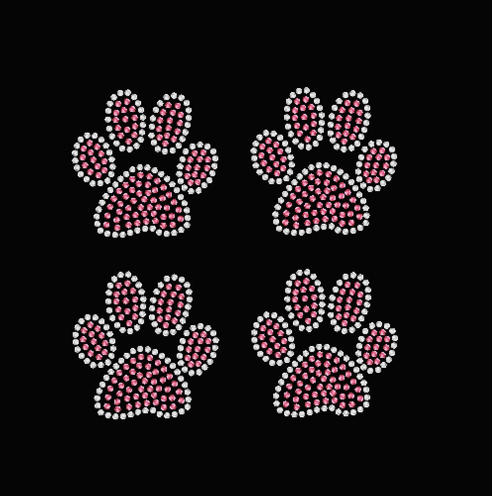 Paw Print - 2.5 Inches - Two Color - Set of 4 Rhinestone Paw Prints